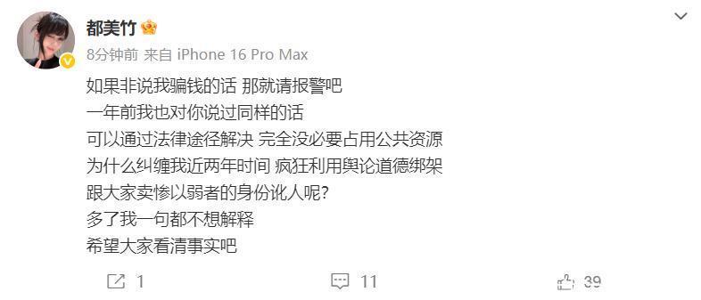 在帖文中,朱女士非难皆好意思竹,为什么不敢濒临她?