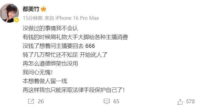 在第二篇回复文中,皆好意思竹说朱女士有钱的时候给主播刷礼物,没钱的时候就思要且归,玩得太6了。