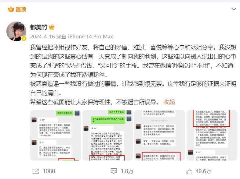 关于糊弄粉丝财帛的控诉,皆好意思竹并不招供。