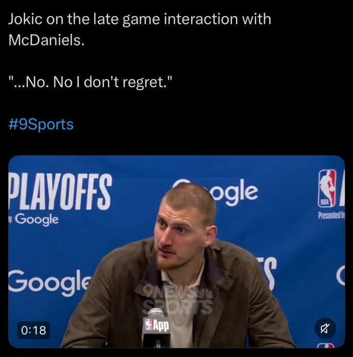 但赛后最热的话题,不是比分,是约基奇在临了技巧冲向麦克丹尼尔斯那一下。